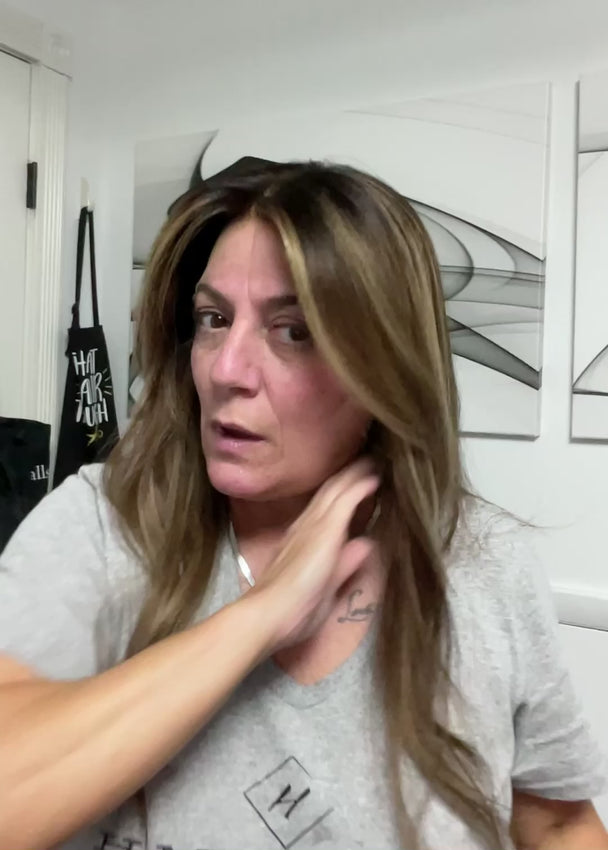 color is a root level 3 (dark brown) into a 4/6 mix and blonde highlights